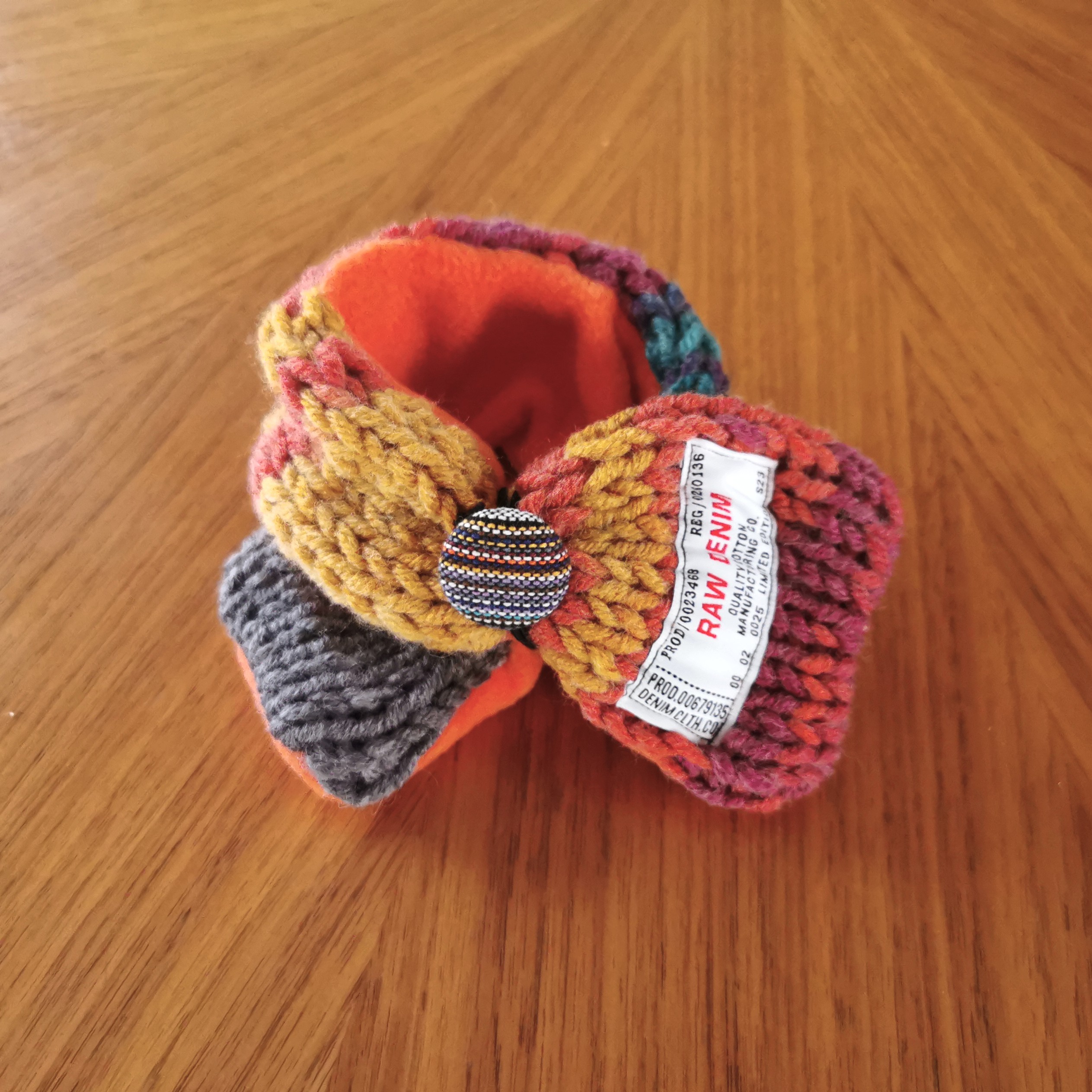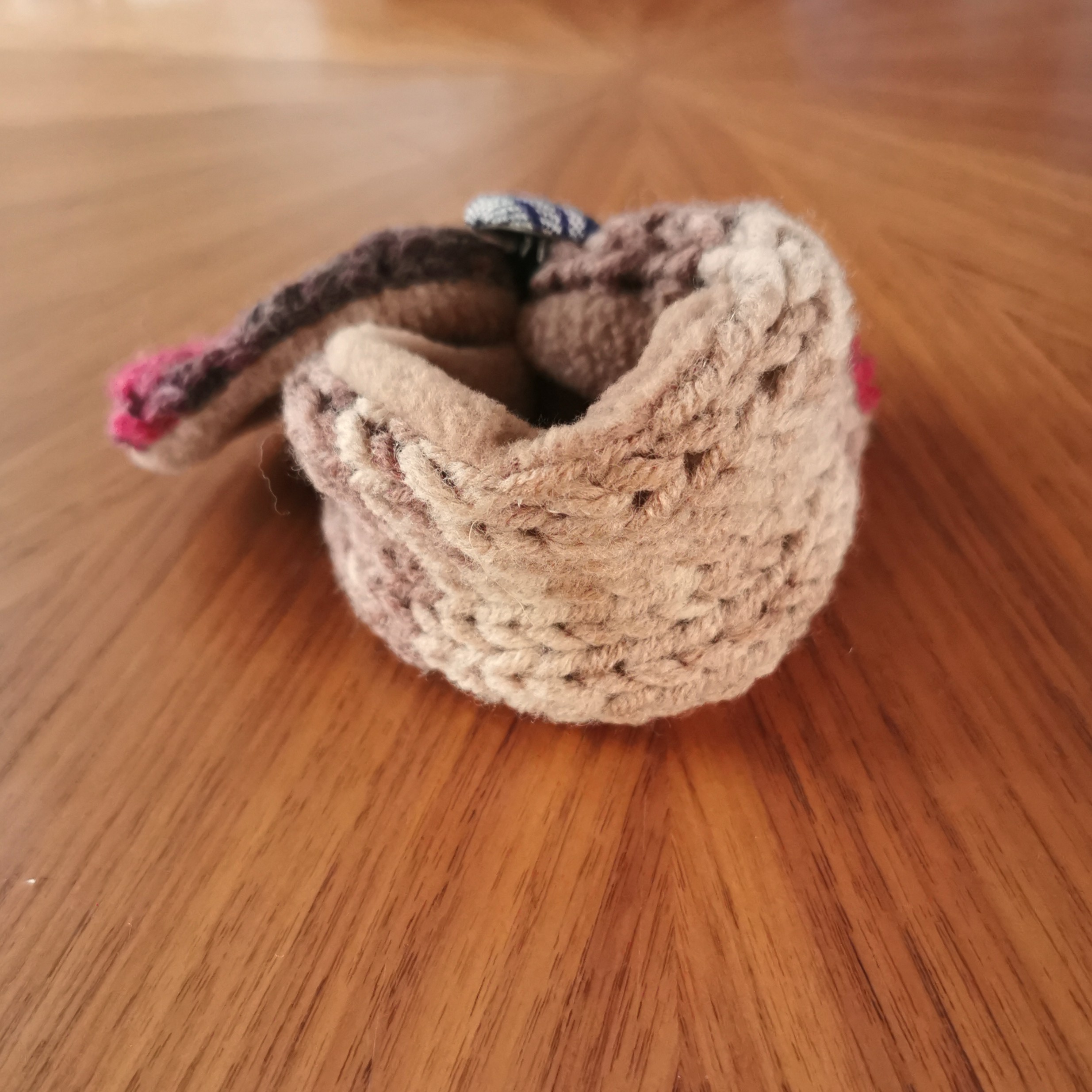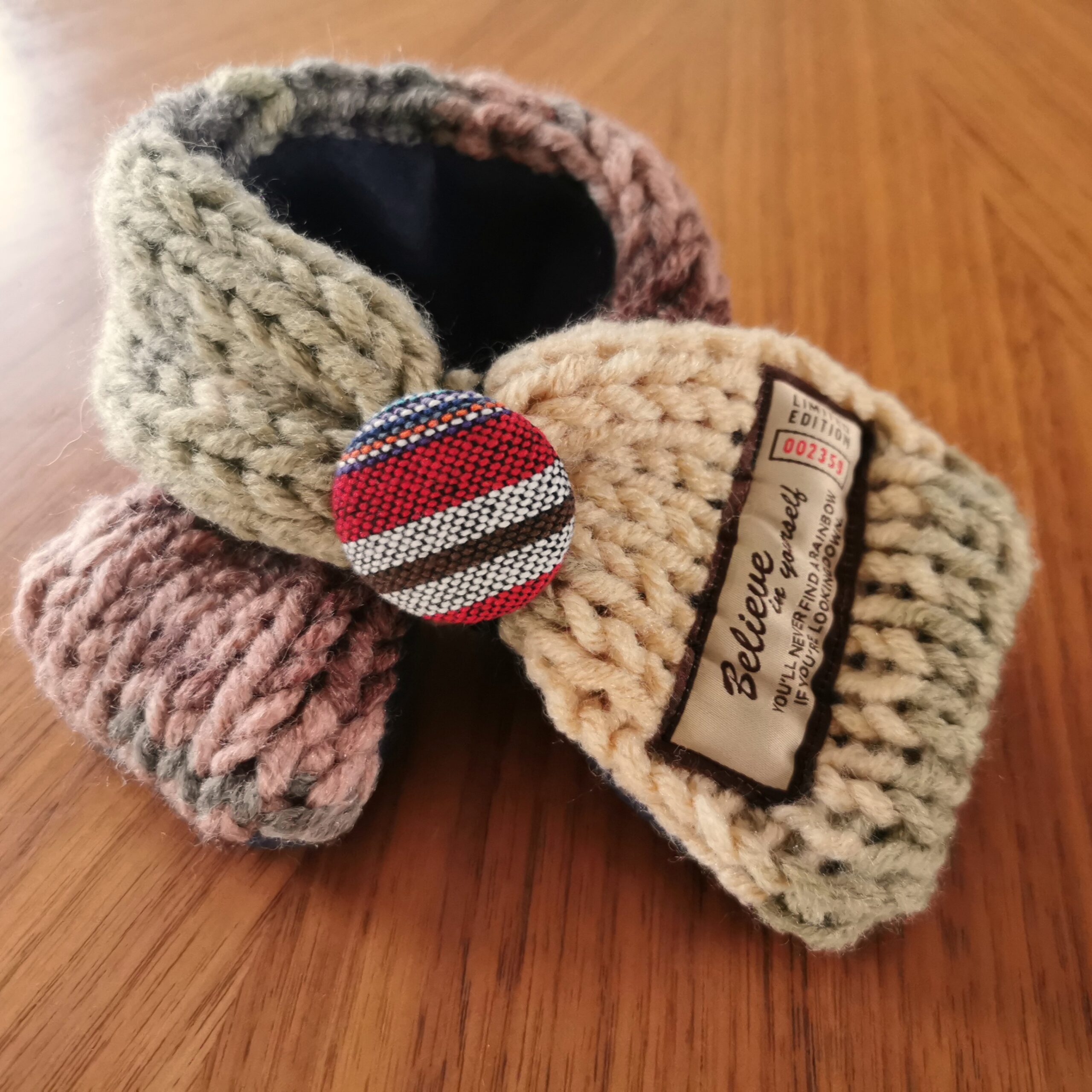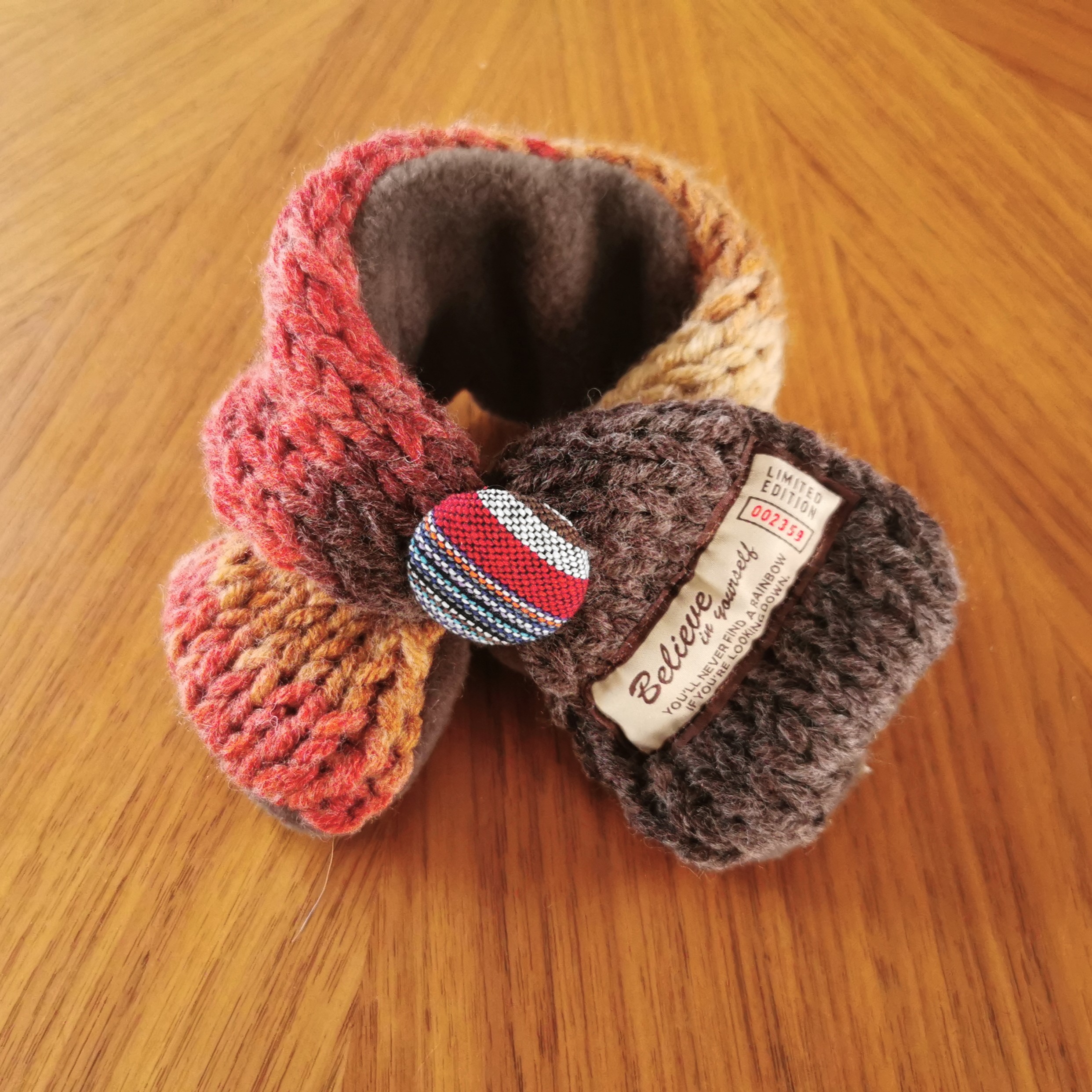 ふんわり軽く&暖かく💕手作りの「くるみボタン」に丸ゴムがついていますので