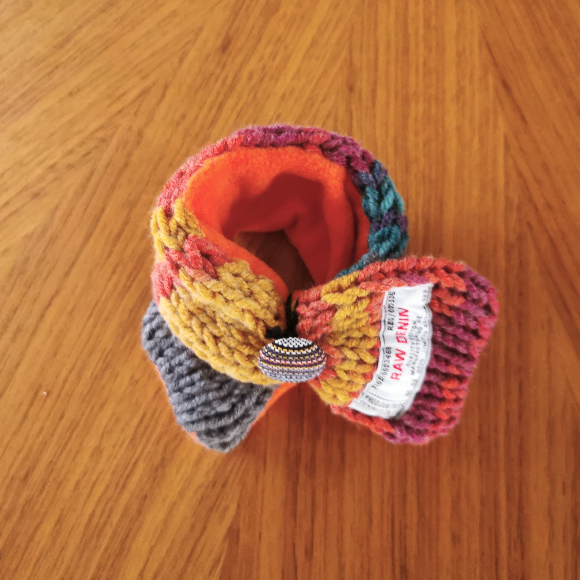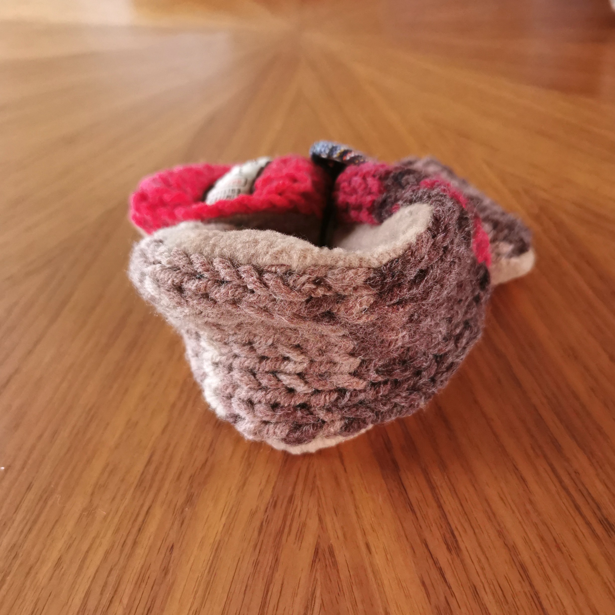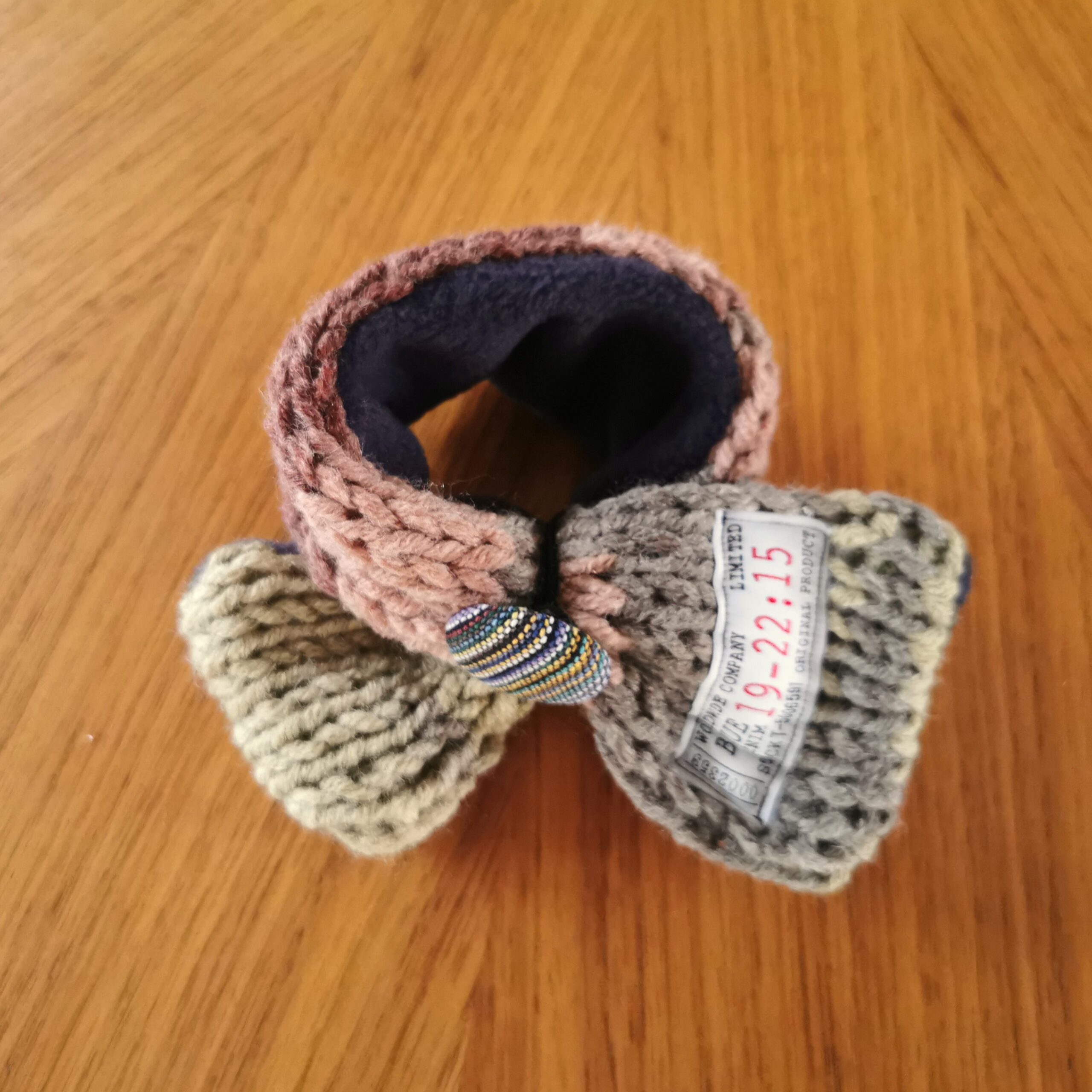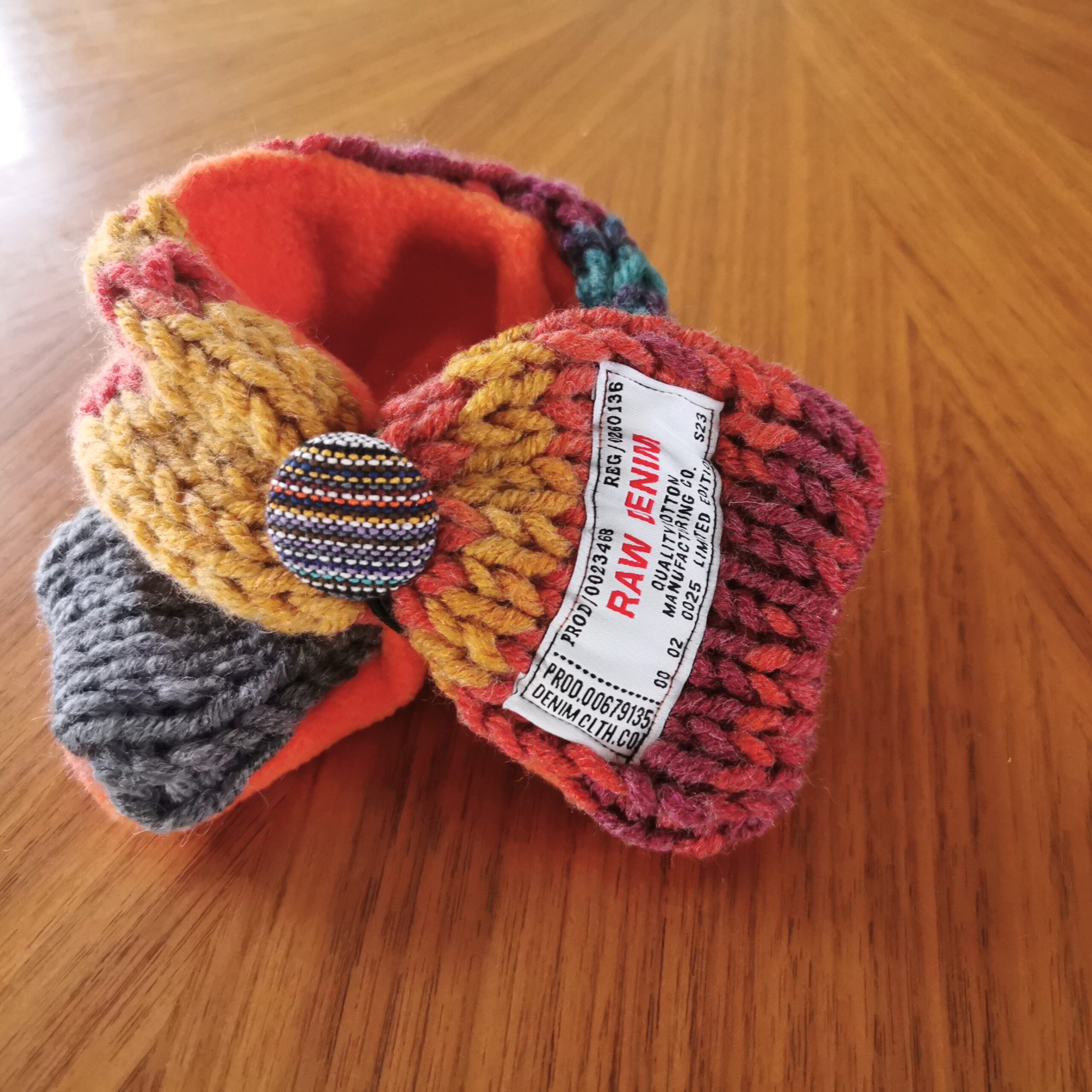 ふんわり軽く&暖かく💕手作りの「くるみボタン」に丸ゴムがついていますので