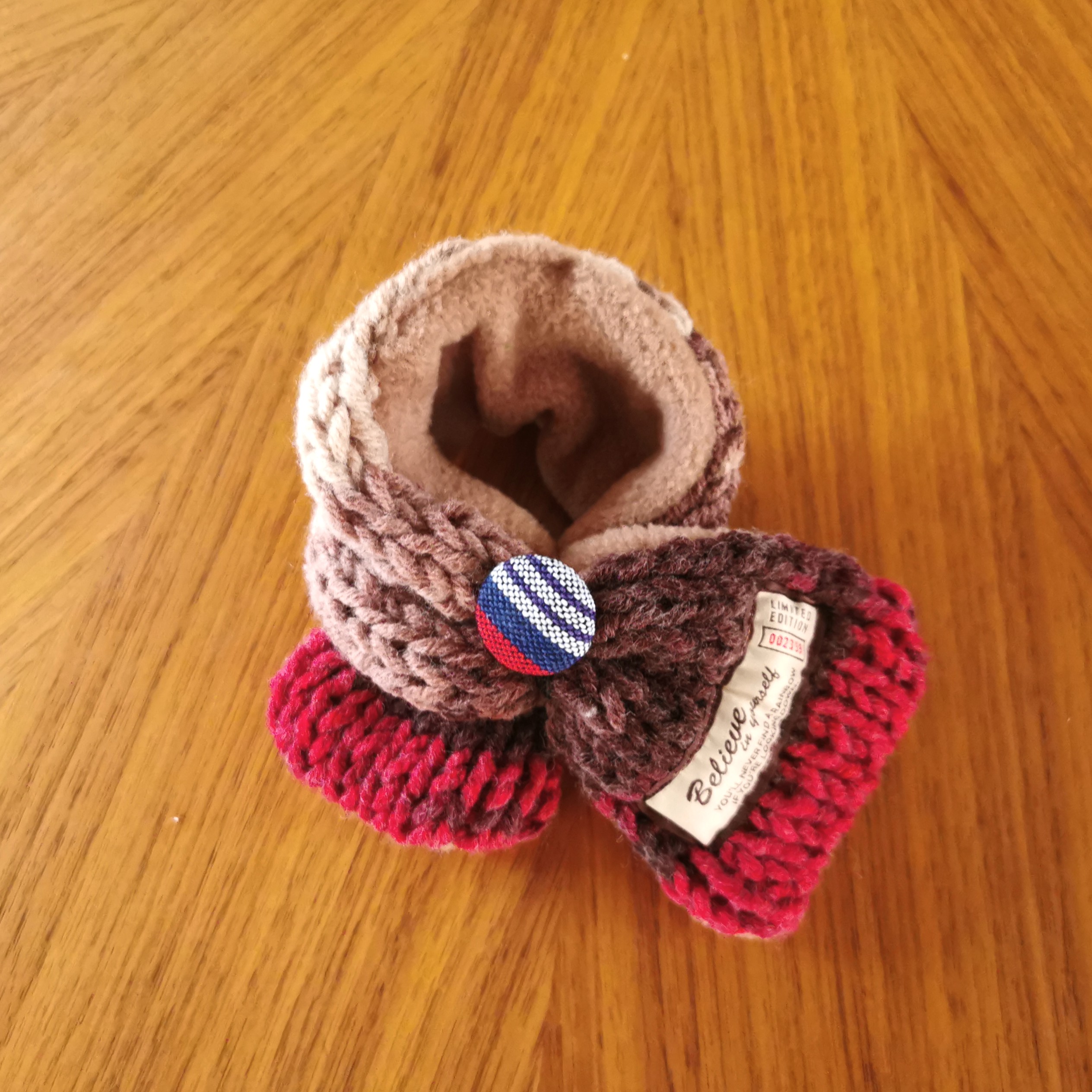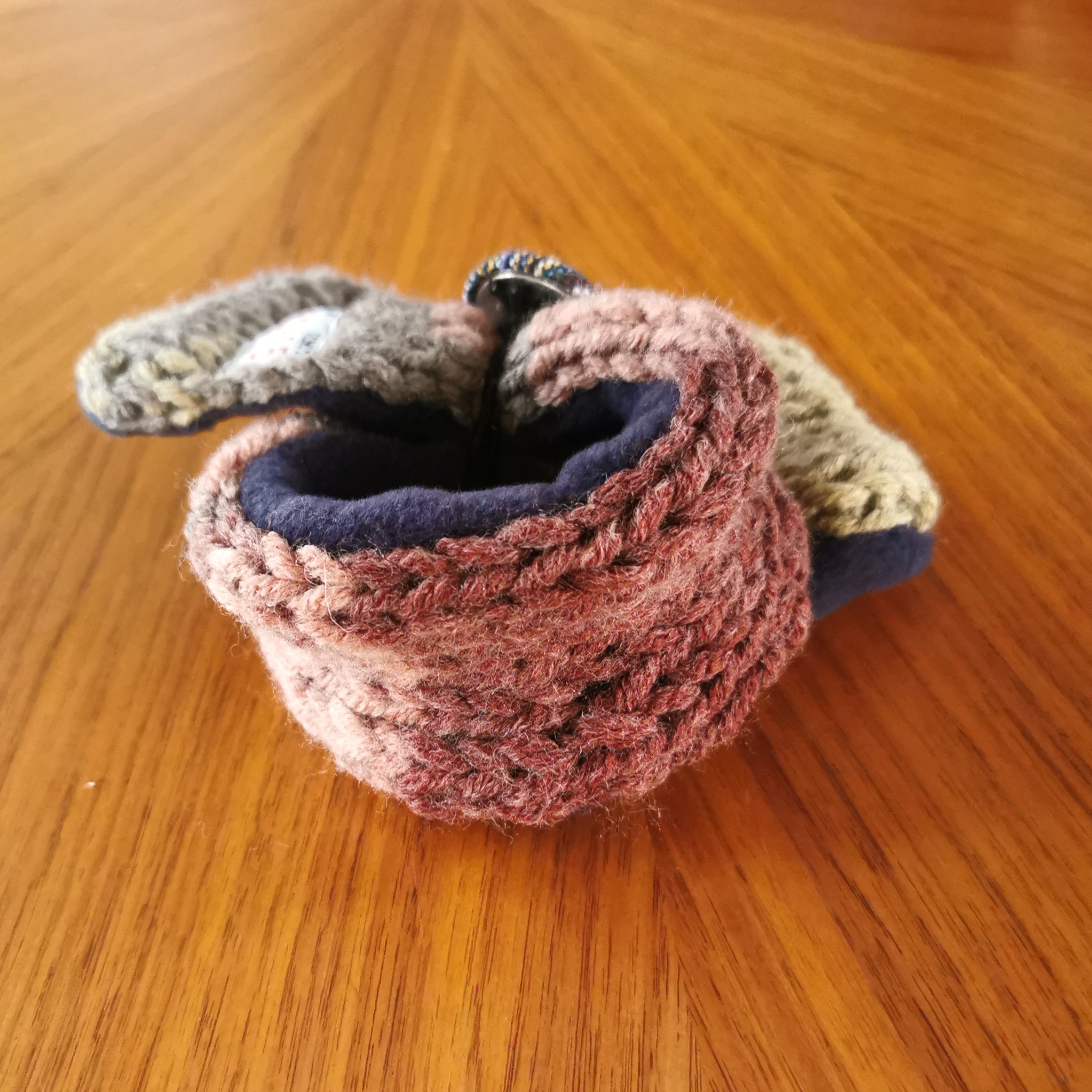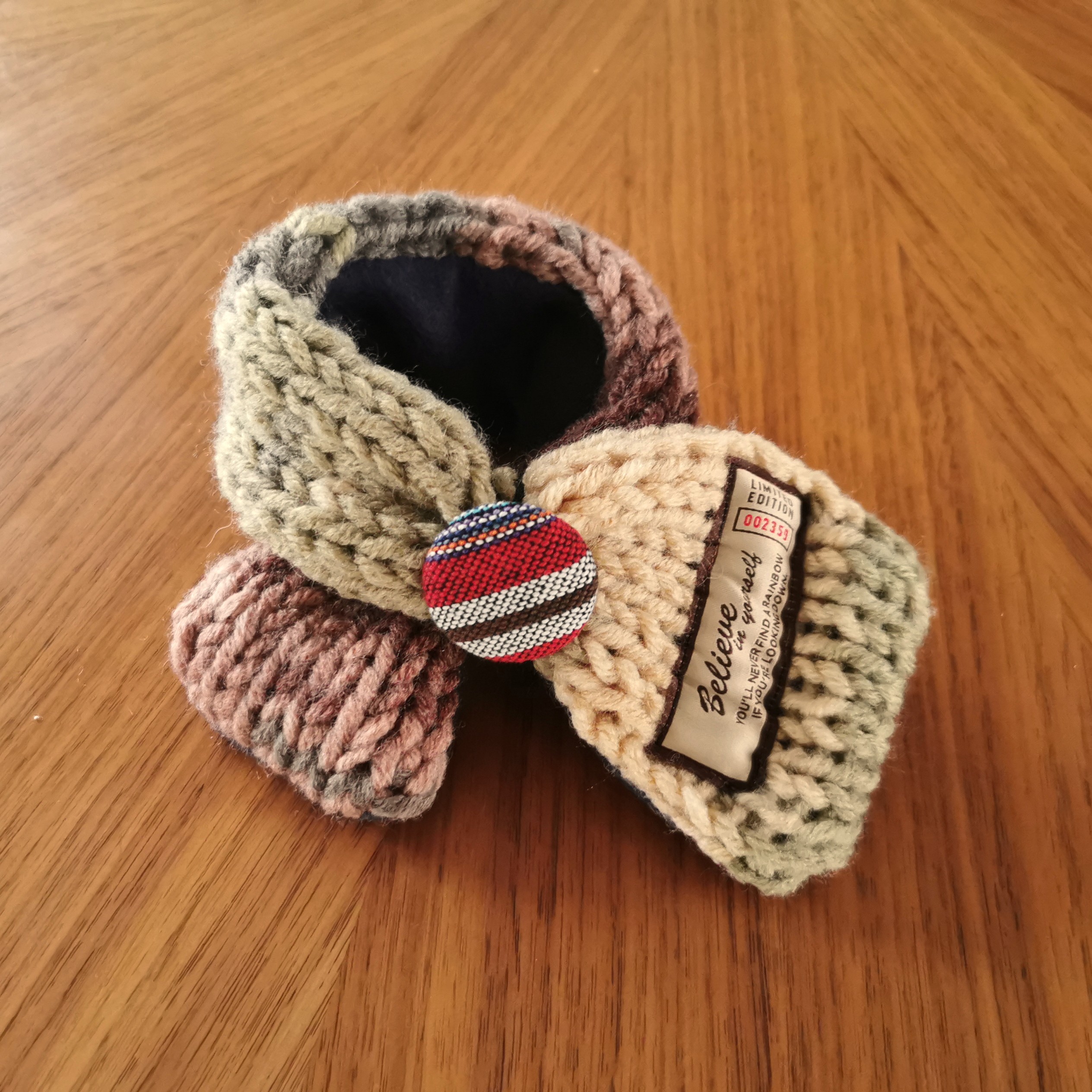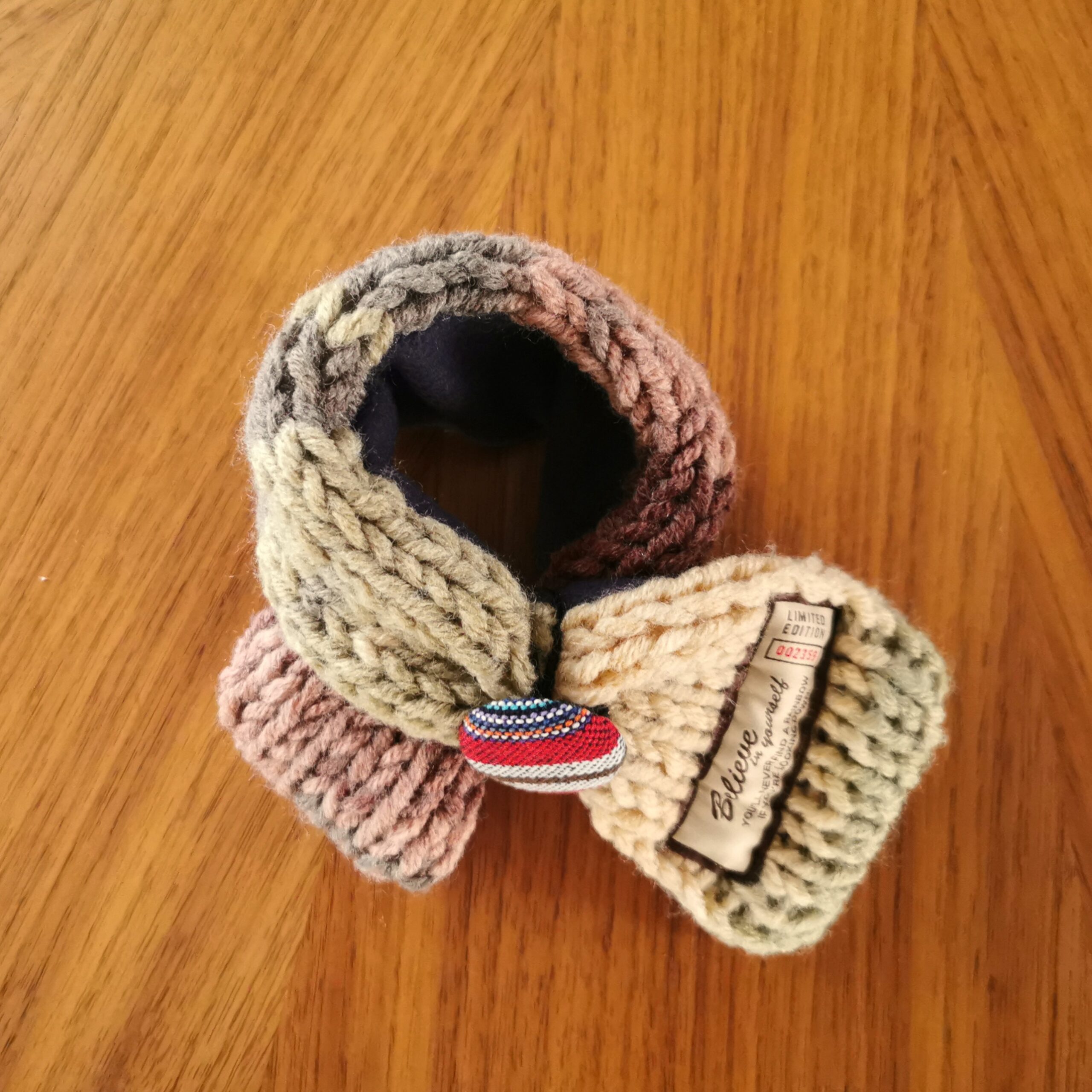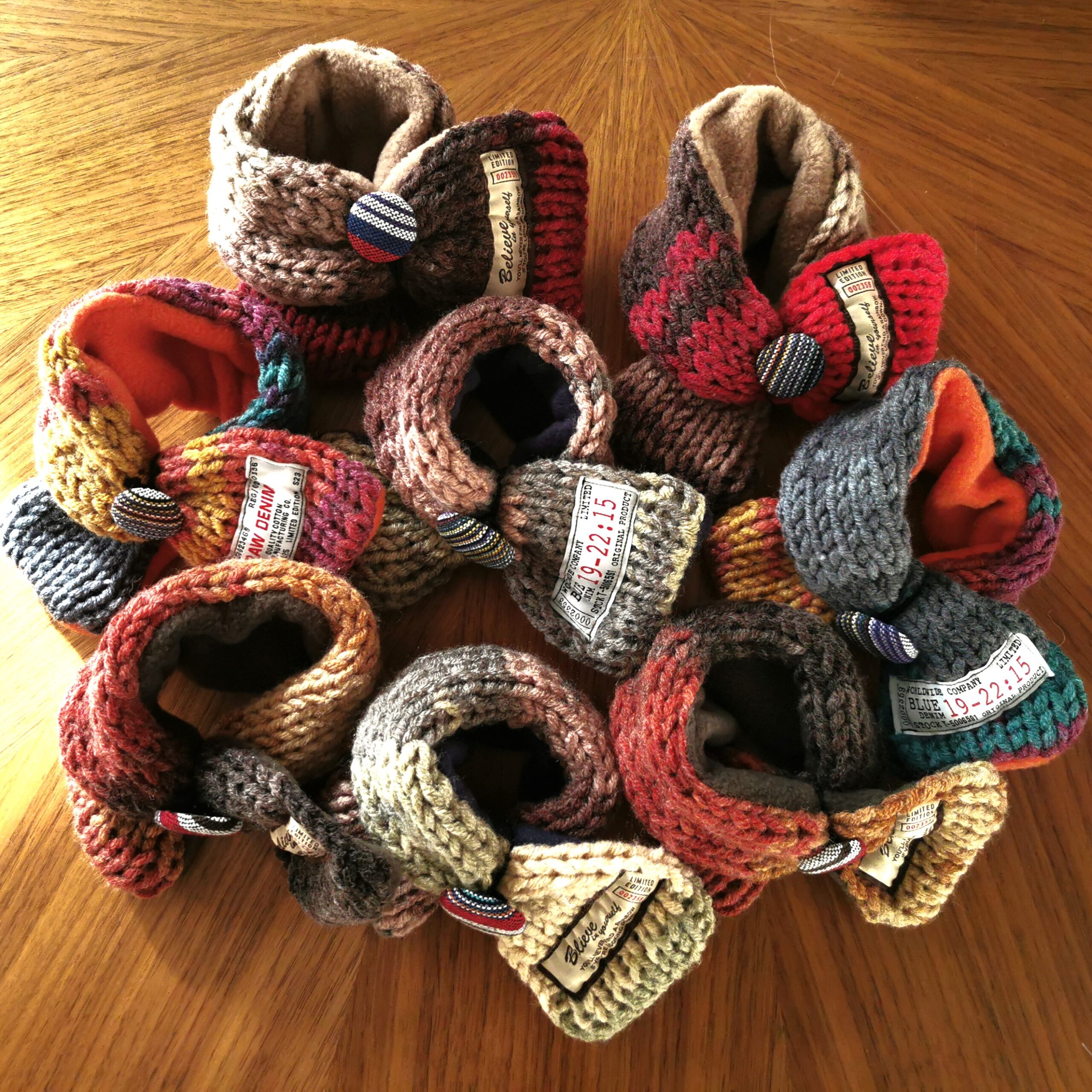 ふんわり軽く&暖かく💕手作りの「くるみボタン」に丸ゴムがついていますので