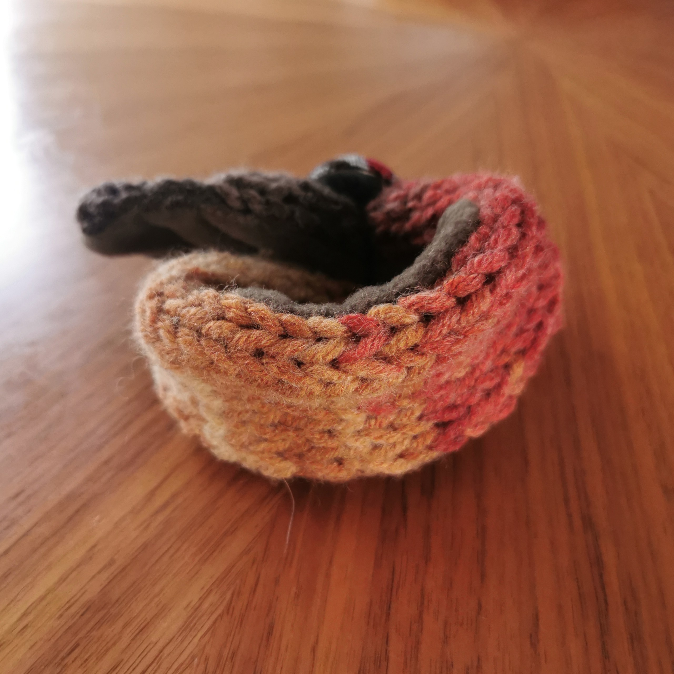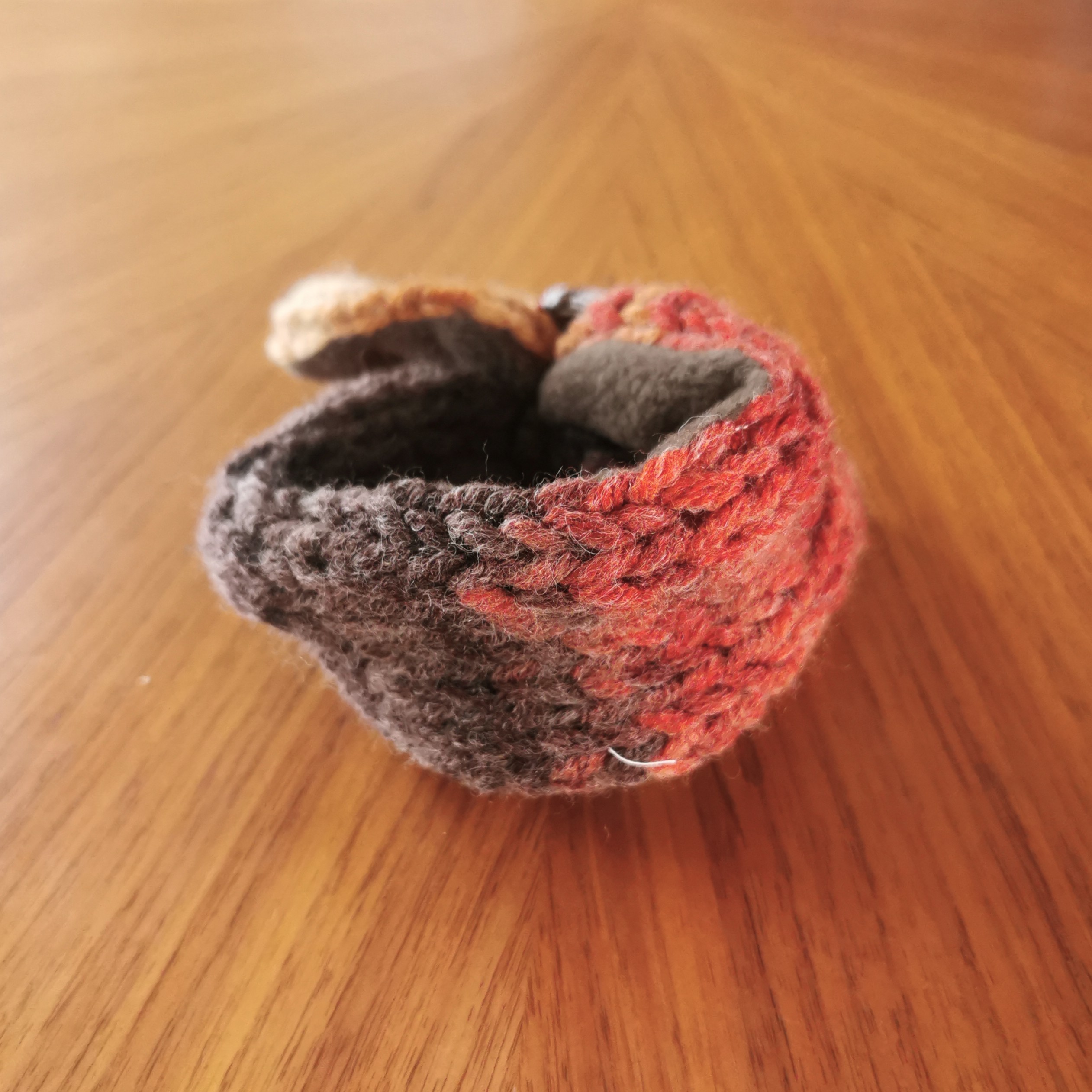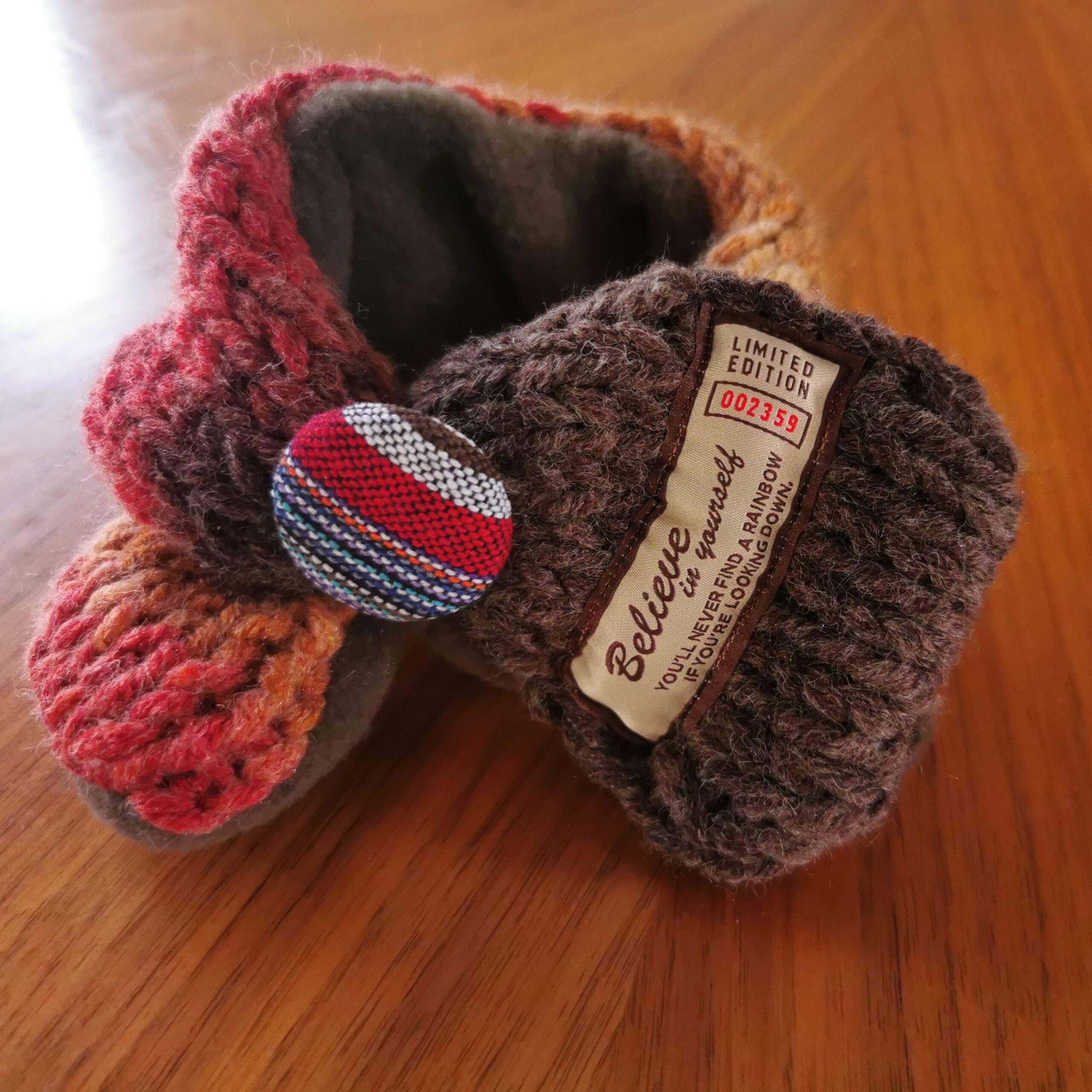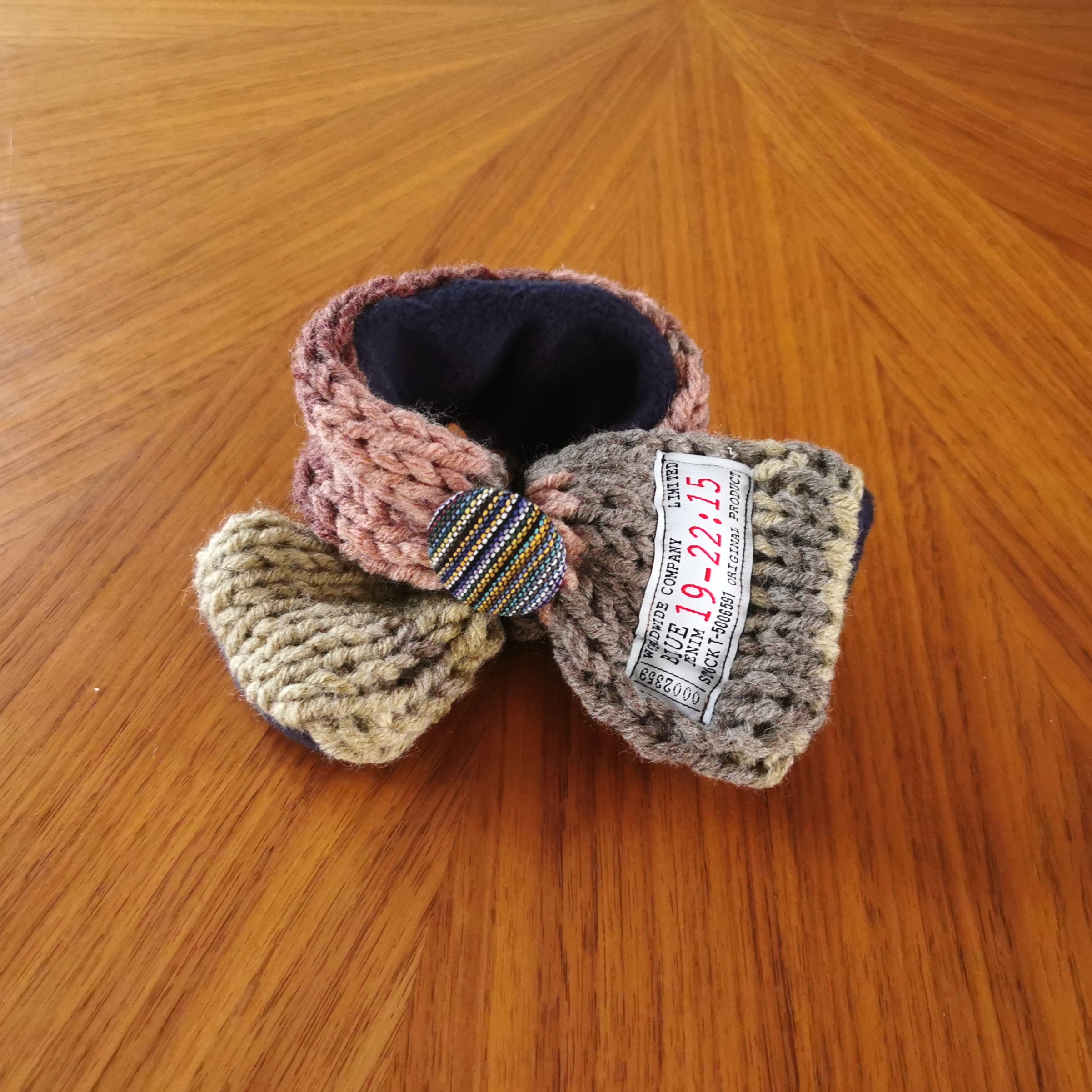 ふんわり軽く&暖かく💕手作りの「くるみボタン」に丸ゴムがついていますので