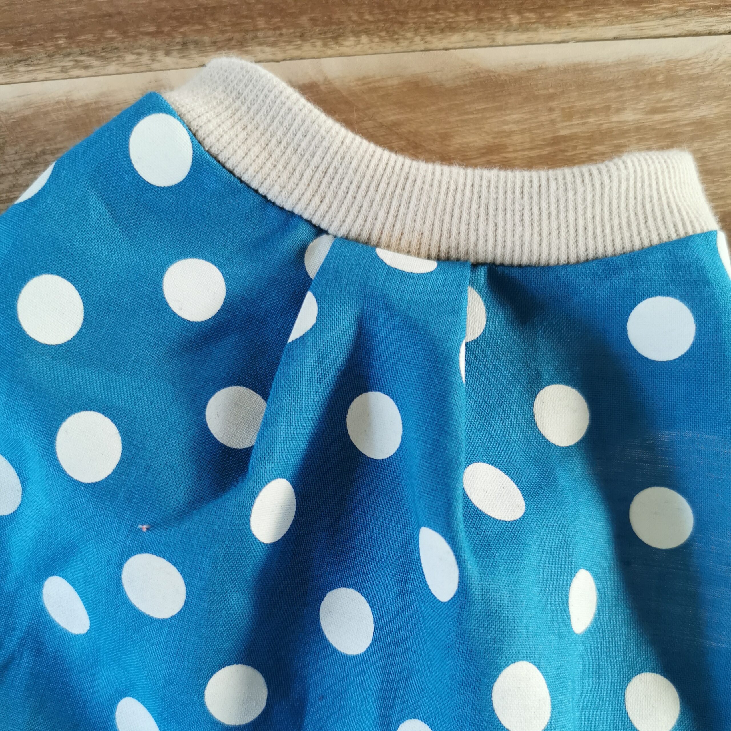 ふんわりタック入りタンクトップ☆綿麻ドット ブルー